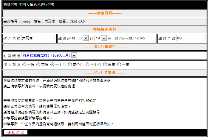 2.正確填寫所有資料,填寫後日後無法修改,信箱請正確填寫否則日後無法收到本站所有通知信